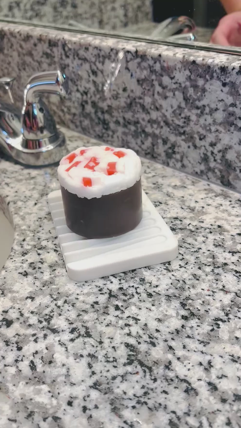 Handcrafted layers mimic hot cocoa, whipped cream, and peppermint garnish