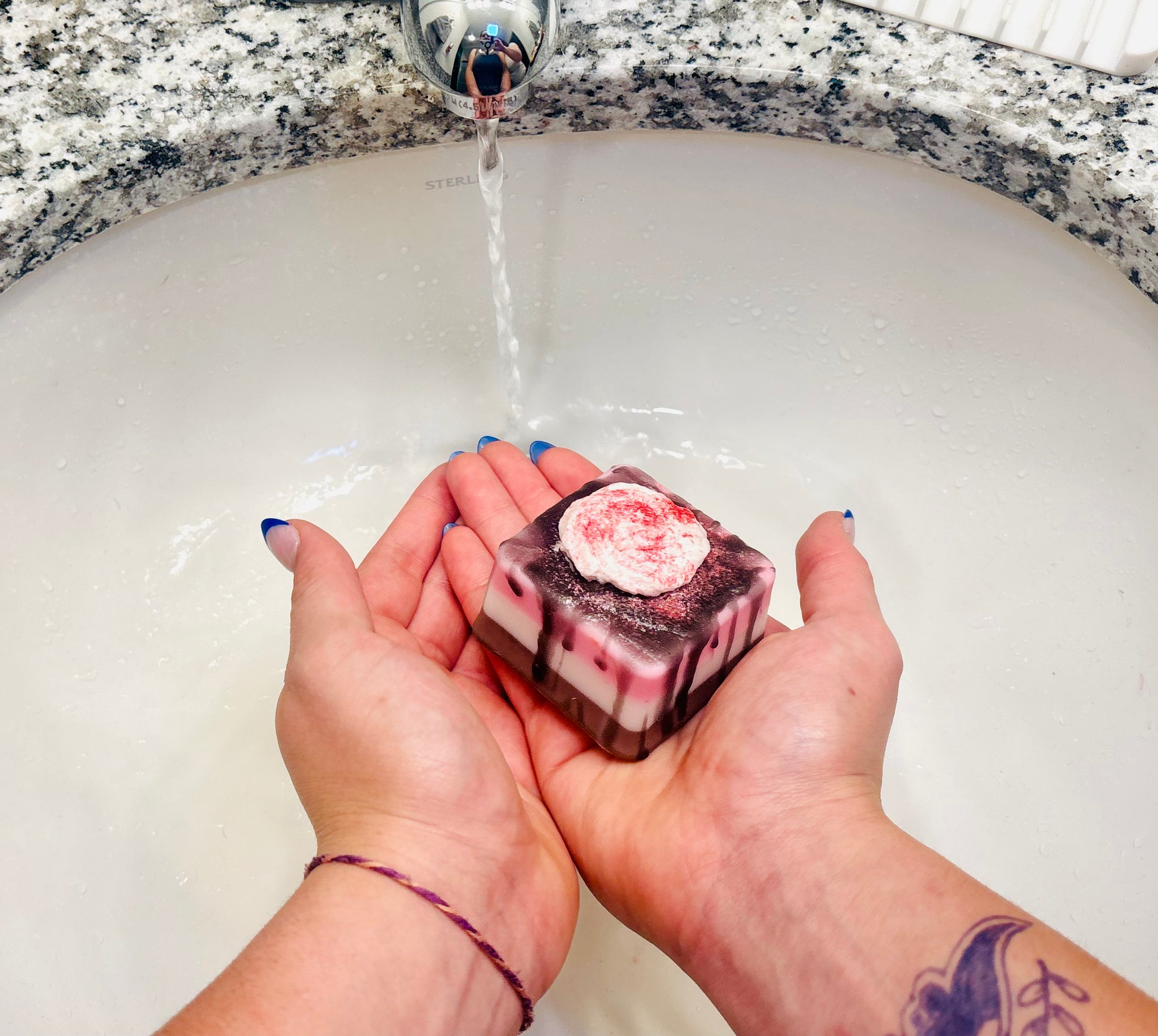 Have your cake and lather it too! Our Neapolitan Cake Soap is a playful, dessert-inspired treat that looks just like a classic slice of Neapolitan ice cream cake. Each bar is carefully layered with strawberry-pink, creamy vanilla, and rich chocolate soap bases, then crowned with fluffy whipped “frosting,” a chocolatey drizzle, and a sprinkle of sweet fun.